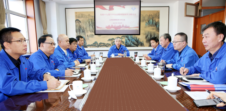 11月26日,公司党委理论学习中心组开展党的十九届六中全会精神读书班,公司党委书记、董事长张维忠主持并领学党的十九届六中全会精神