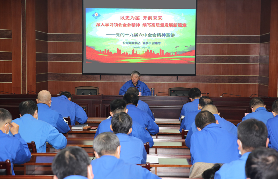 2021年12月14日,公司党委举办学习贯彻党的十九届六中全会精神宣讲会,公司党委书记、董事长张维忠作宣讲报告,公司领导及全体中级管理人员参加