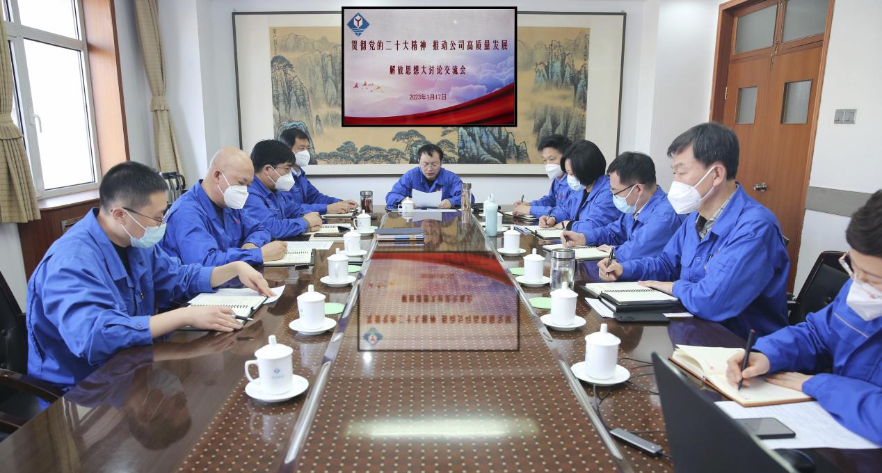 1月17日,公司党委书记、董事长李焕岭主持召开“贯彻党的二十大精神,推动公司高质量发展”解放思想大讨论交流会,领导班子成员围绕“八破八立”内容和2022年目标任务完成情况进行盘点、分析、讨论、交流,深入查找制约公司高质量发展存在的问题,并结合实际提出改进建议,进一步在解放思想中统一思想、在凝聚共识中争先进位,努力推动公司各项工作实现新突破、取得新成效,为实现百亿中国·yL23411永利(集团有限公司)-官方目标,加快企业高质量发展贡献力量。