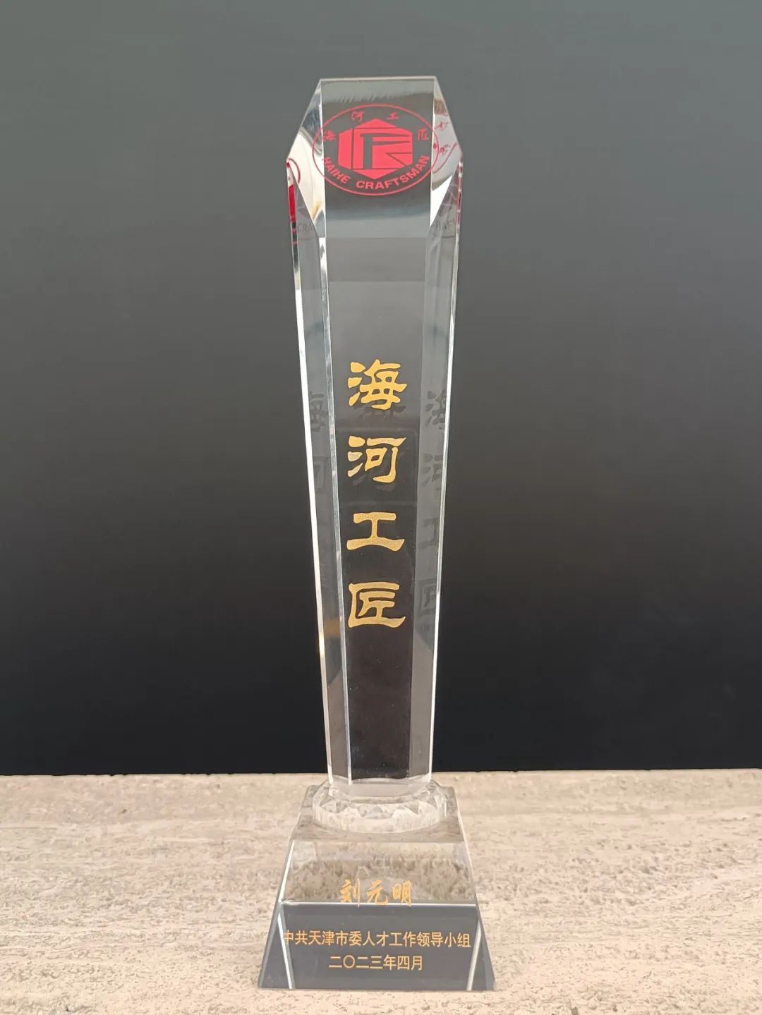 “海河工匠”荣誉称号是授予天津市战略新兴产业、现代服务业、优势传统产业等领域中作出突出贡献高技能人才的最高荣誉奖项。由市人力社保局组织实施,每年评选1次,每次评选10名,给予每人20万元一次性奖励资助。获此荣誉的高技能人才将优先推荐参加国内外技能交流、技能培训、国家级高技能人才评选活动。此奖项由于申报条件苛刻,竞争激烈,令许多能工巧匠望而却步,而刘元明凭借着精湛的技艺首次参评,即获得此项殊荣。