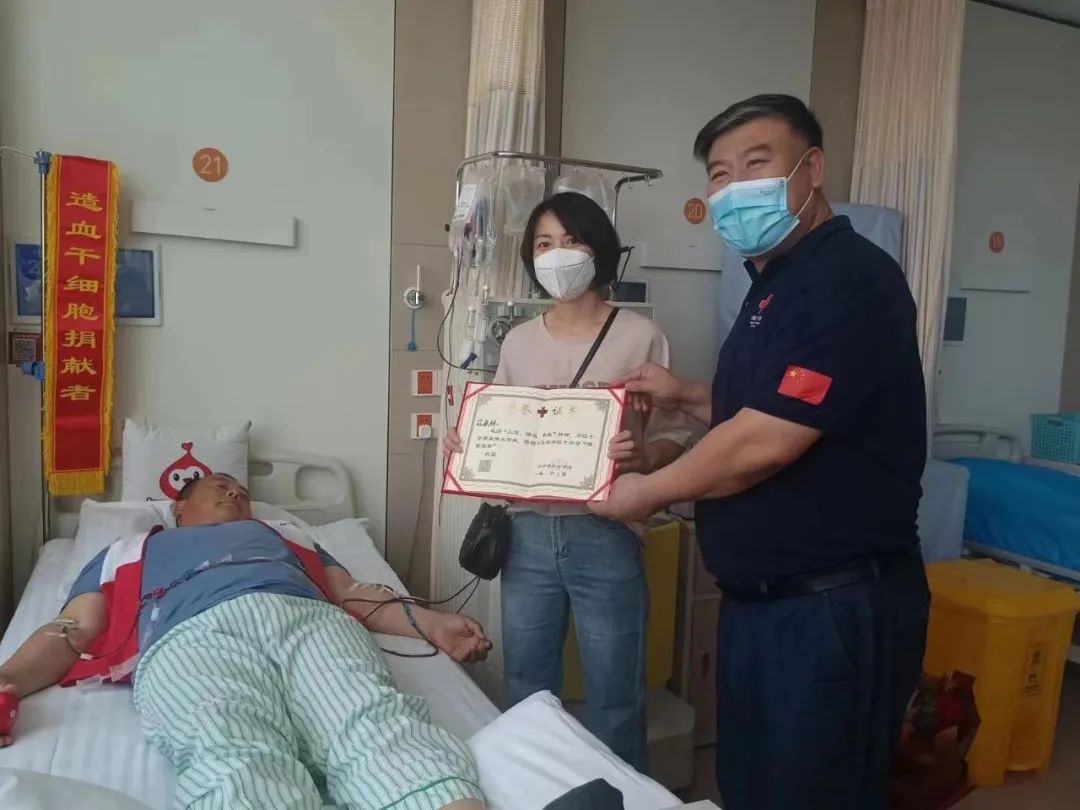 6月4日,他在市红十字会同志的陪同下,以最好的身体状态入住天津市第一中心医院,接受捐献前的预处理,在接下来的几天时间里,他注射了多针次的动员针,并在家人、公司领导和红十字会工作人员的陪同下,于6月8日顺利完成了造血干细胞的捐献。
