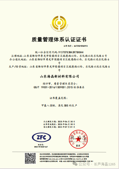 近日,山东新材料公司通过上下不懈努力,取得了国际通用的环境管理体系认证证书、质量管理体系认证证书和职业安全健康管理体系认证证书,标志着该公司在参与全球供应链精细化、标准化管理方面实现了质的飞跃,也是该公司不断提升企业核心竞争力、实现高质量发展的重要体现。